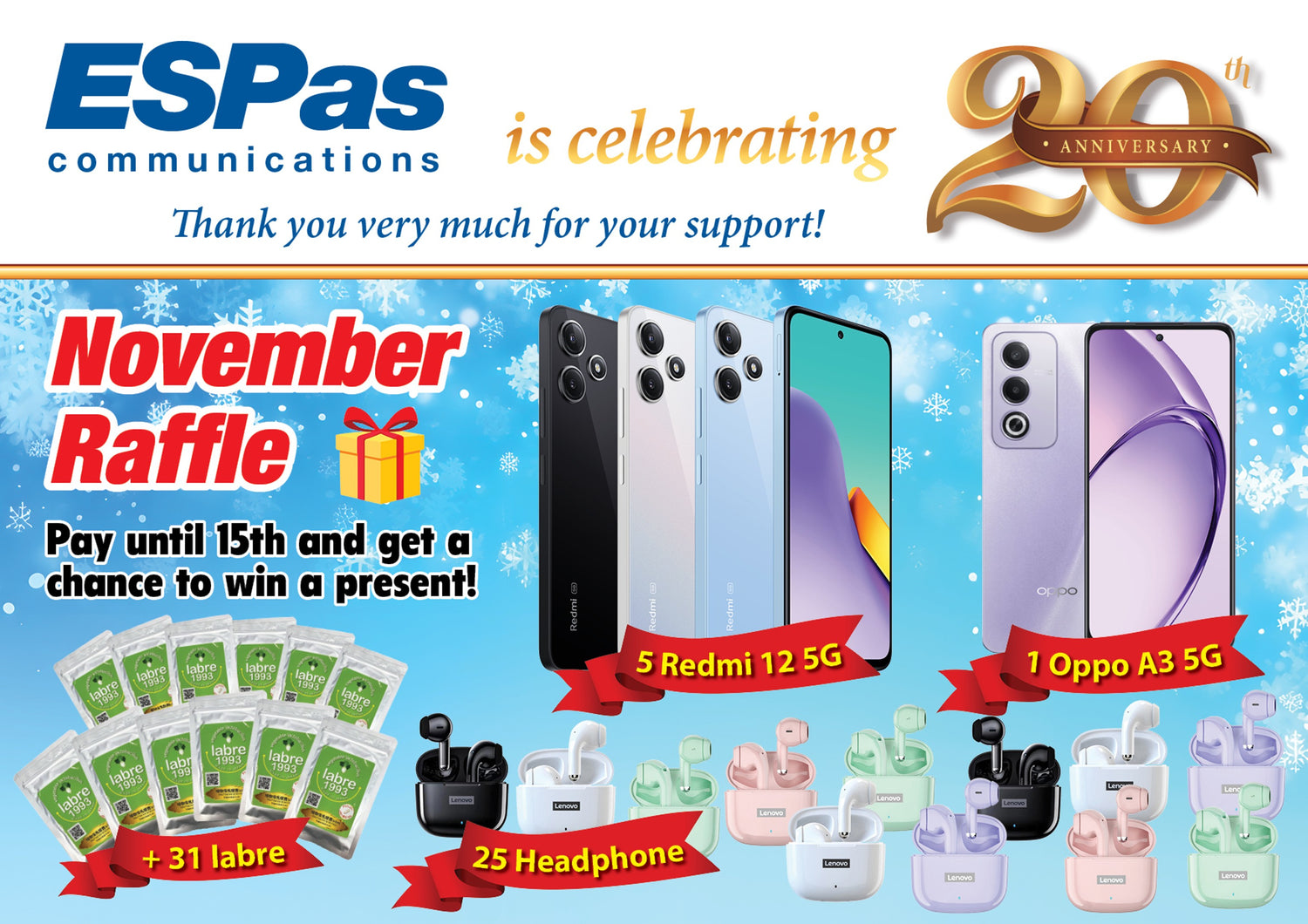 Just pay your bill by the 15th and get a chance to win the prizes!